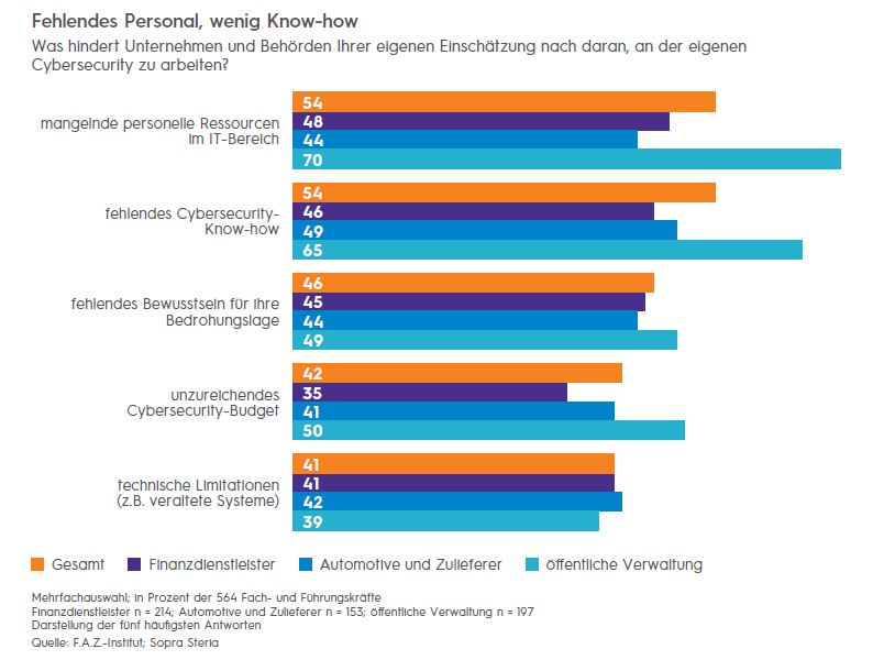 Fragt man die Organisationen, warum sie ihre Cybersicherheit nicht verstärken, so sind die beiden meistgenannten Faktoren Personal (54 Prozent) und Know-how (54 Prozent). Beide Punkte lassen sich nicht schnell und einfach über Nacht ändern. Personal zu gewinnen und Expertise aufzubauen benötigen Zeit. Hier gilt es, mittel- und langfristig zu planen und ein durchdachtes Sicherheitskonzept zu verfolgen. Dazu gehört die Integration von KI in die eigene Sicherheitsarchitektur. Das bedeutet zusätzliche Anstrengungen, die allerdings auf langfristige Sicht das Personal entlasten und die Qualität der Leistungen steigern werden.